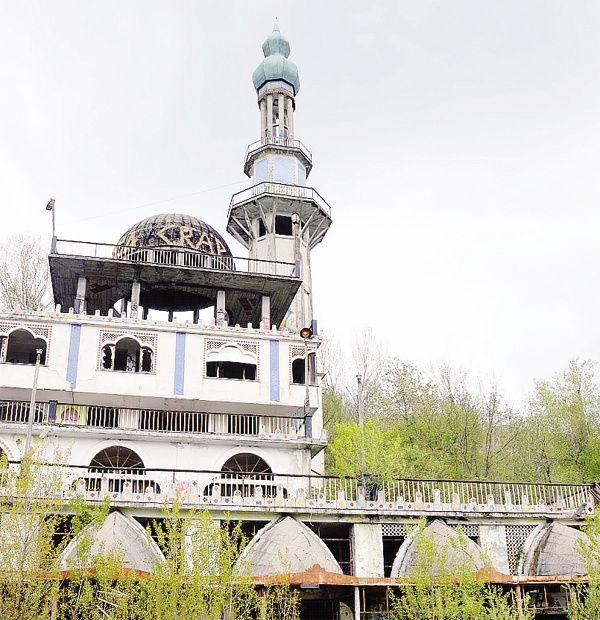 title="I ruderi del minareto sul colle di Consonno"
