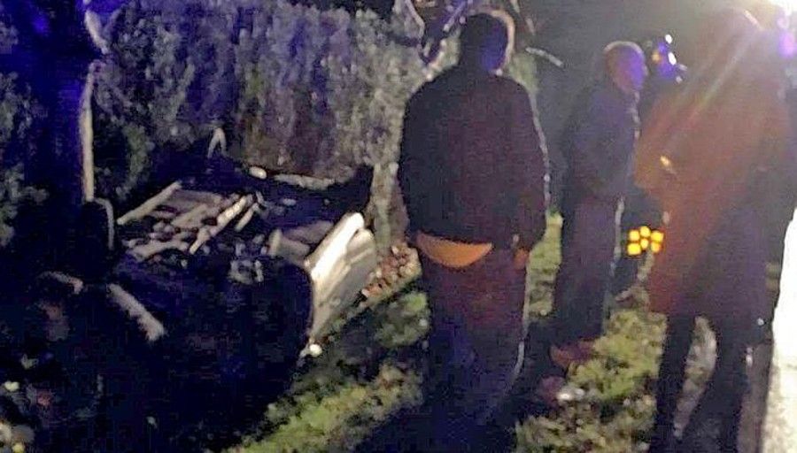Auto fuori strada si ribalta, illeso il conducente