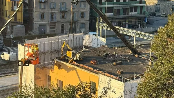 Bellano: è partita la demolizione del vecchio stabile della sottostazione elettrica