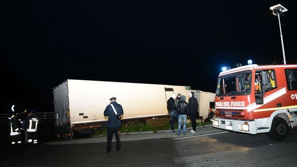 Bellano, il camion incastrato