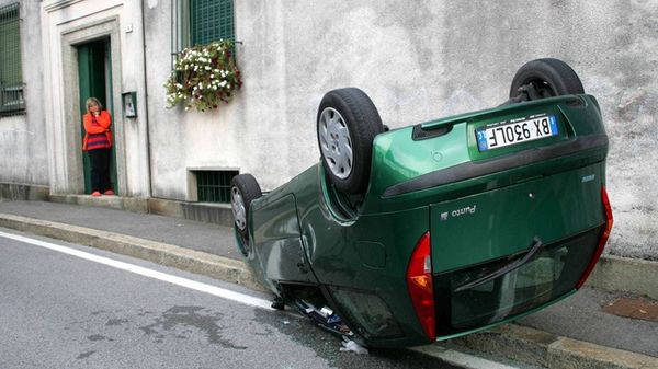 Lecco, auto ribaltata