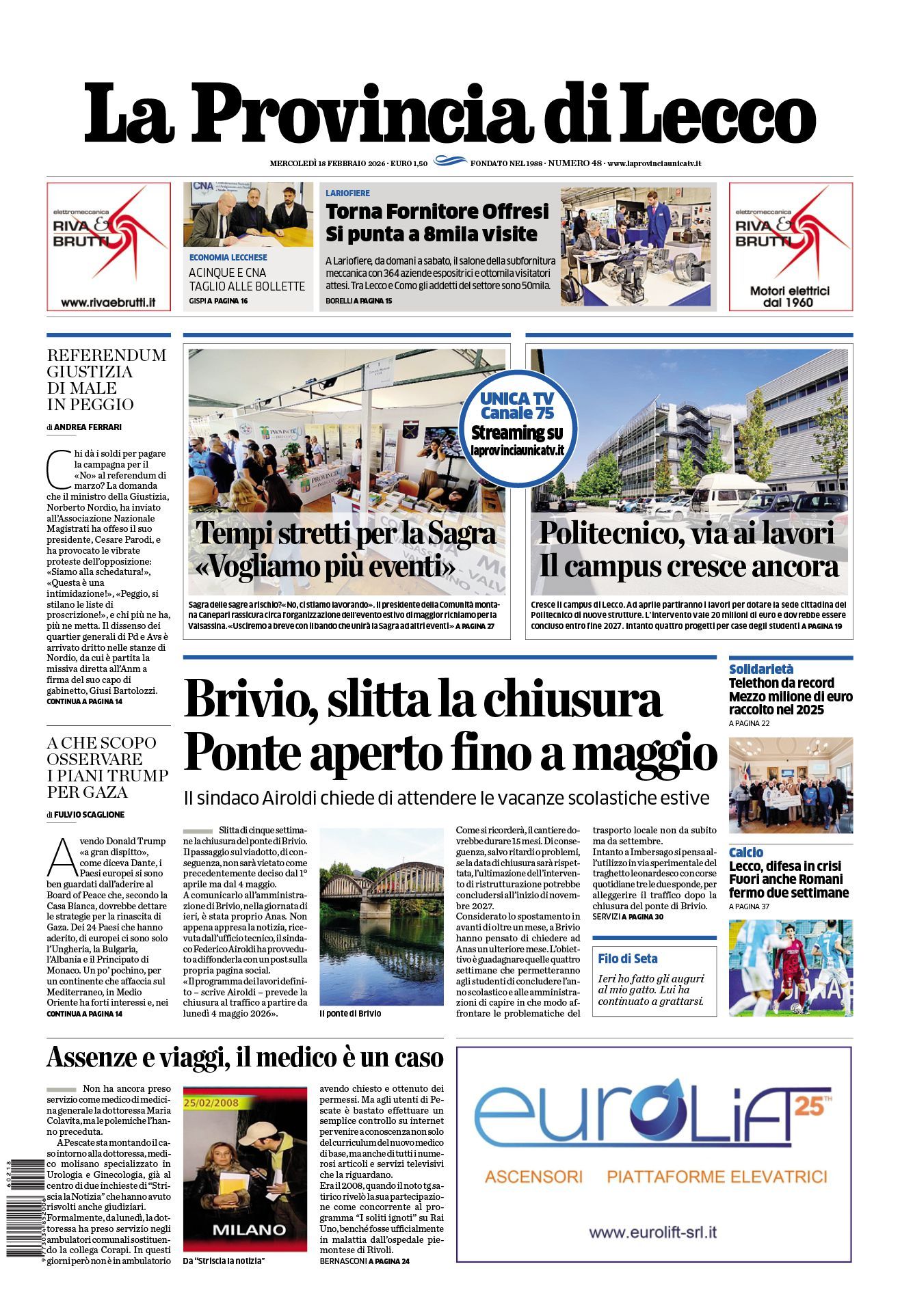 Vai a tutte le edizioni de La Provincia di Lecco