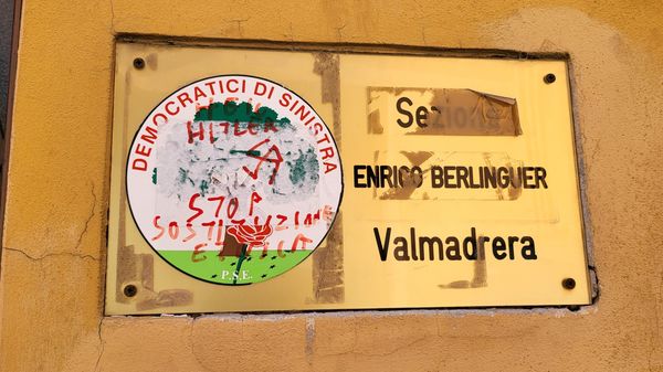 Valmadrera Croce uncinata, saluto a Hitler, frasi contro la “sostituzione etnica” sulla sede del Partito democratico