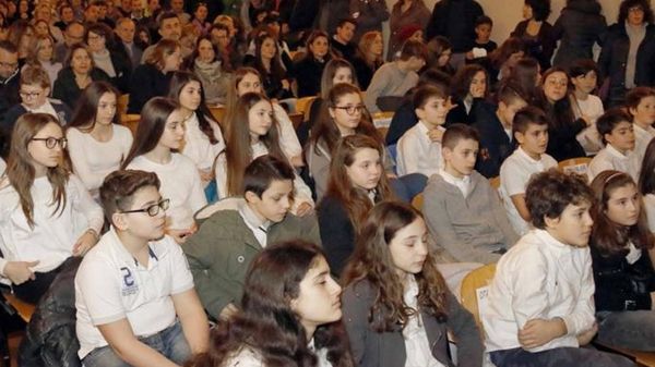 Auditorium del centro civico di Valmadrera gremito per una serata aperta alle scuole