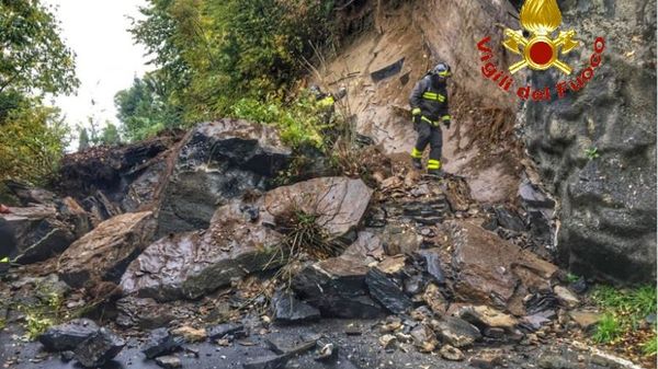 Massi e detriti sulla strada per Vezio, nessuno è rimasto ferito ma il rischio è stato grande - Sul posto vigili del fuoco e tecnici comunali per riaprire la strada e metterla in sicurezza