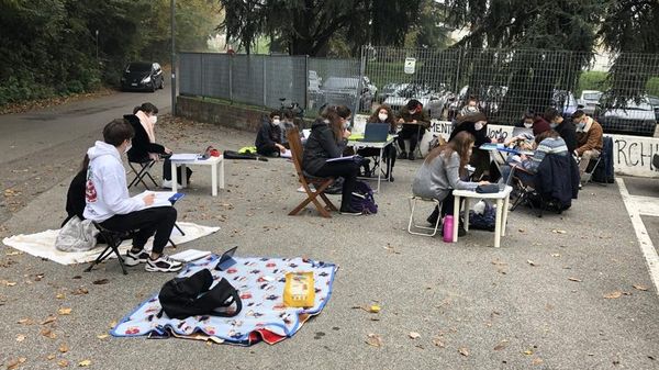 Sit-in di protesta pacifica da parte degli studenti della quinta BS «La didattica a distanza non funziona». Alle 10 l’arrivo dei carabinieri