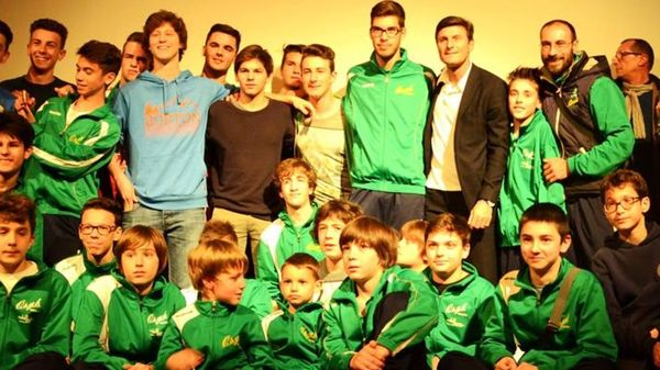 Il campione nerazzurro incontra all’oratorio di Merate i baby atleti dell’Osgb «Qui per la fondazione che punta a far crescere tanti vostri coetanei in Argentina»