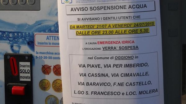 Interruzione erogazione a Imberido di Oggiono e nelle zone alte di Galbiate Il provvedimento dalle 23 all’alba. Problemi anche a Olgiasca di Colico