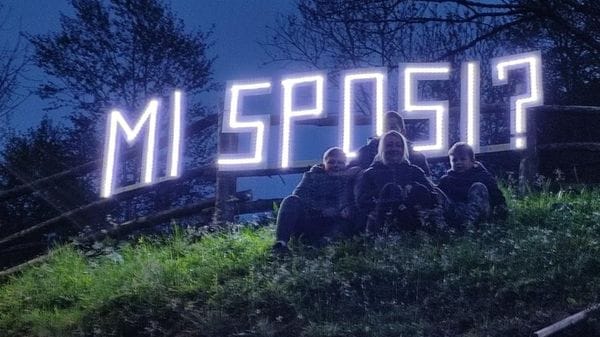 Lui ha chiesto la mano di lei con un annuncio visivo al termine della camminata sul ponte tibetano