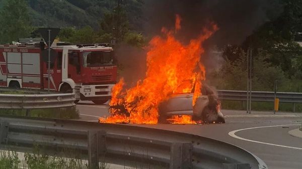Una Citroen ha preso fuoco sulla rotonda di Talamona lungo la statale 38