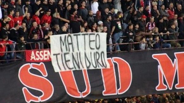 Una scritta dedicata al ristoratore in coma è apparsa durante la partita Milan Juve