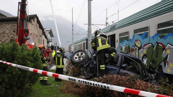 Villa di Tirano, auto incastrata fra le sbarre investita dal treno. Ferito il conducente