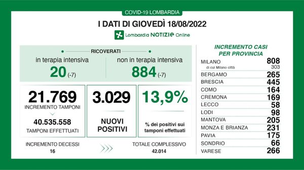 Oggi in Italia sono stati registrati 36.265 casi e 128 decessi