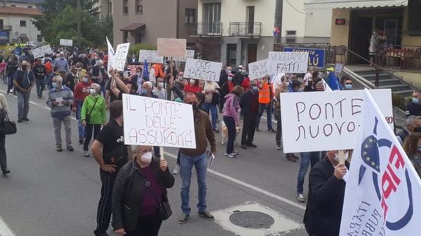 Si sono dati appuntamento alle 10 in via Alla Stazione e hanno sfilato con i cartelli per chiedere un viadotto adeguato alle esigenze attuali