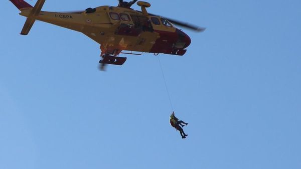 Intervento dell’elicottero questa mattina in parete per recuperare un uomo ferito a un braccio.