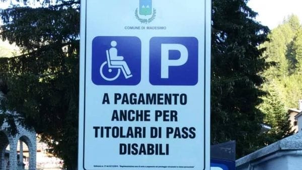 «Sosta a pagamento per i disabili» Madesimo, cartello tolto in 48 ore