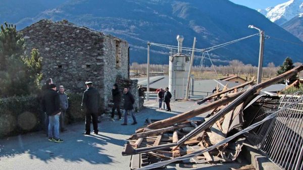 La tragedia a Traona in via Valeriana Vecchia. Alcuni frammenti avrebbero raggiunto la donna. Inutili i soccorsi. Vari danni per le raffiche.