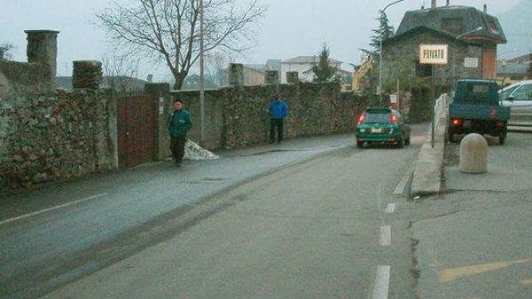 La protesta a Campodocino. Gli abitanti di via Tini sono preoccupati: «Ogni volta che transitiamo davanti casa abbiamo paura. Ci sono anche alberi pericolanti che potrebbero cedere».