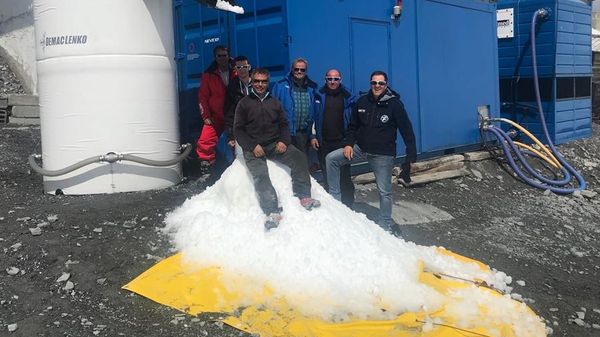 Test superato per l’impianto che produce neve artificiale anche sopra lo zero termico e senza additivi chimici.
