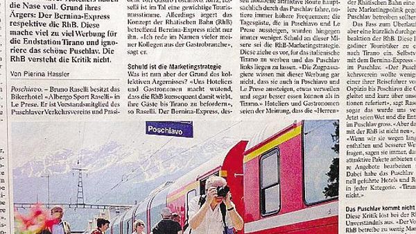 Dalla Valposchiavo critiche al marketing della Ferrovia Retica Siluro di un albergatore di Le Prese: «Da noi si mangia meglio»