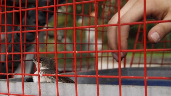 Era rimasta impigliata tra due fili sospesi della rete telefonica. Sono intervenuti i Vigili del fuoco e l’hanno salvata