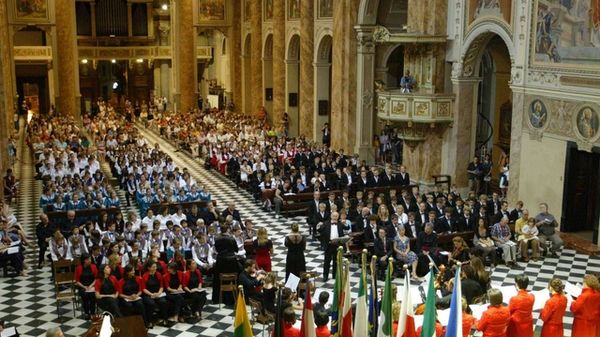 Emozionante la celebrazione in Basilica alla presenza degli otto cori al gran completo. E nel pomeriggio la sfilata sul lungolago prima del grande concerto in piazza Garibaldi
