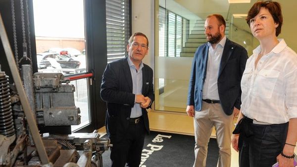 La first lady in redazione accompagnata dal vice presidente Mauri e da Rossini