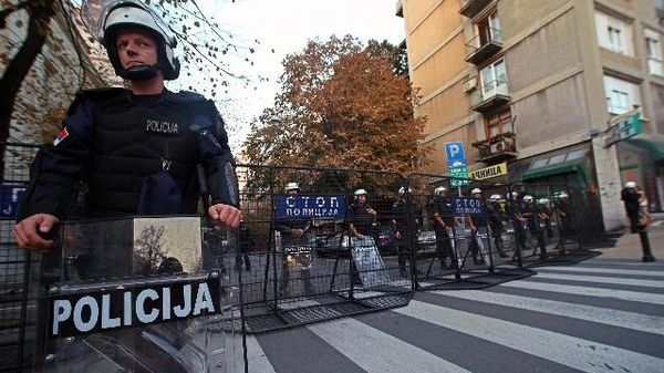 Raduno al centro stampa tra massicci cordoni di polizia
