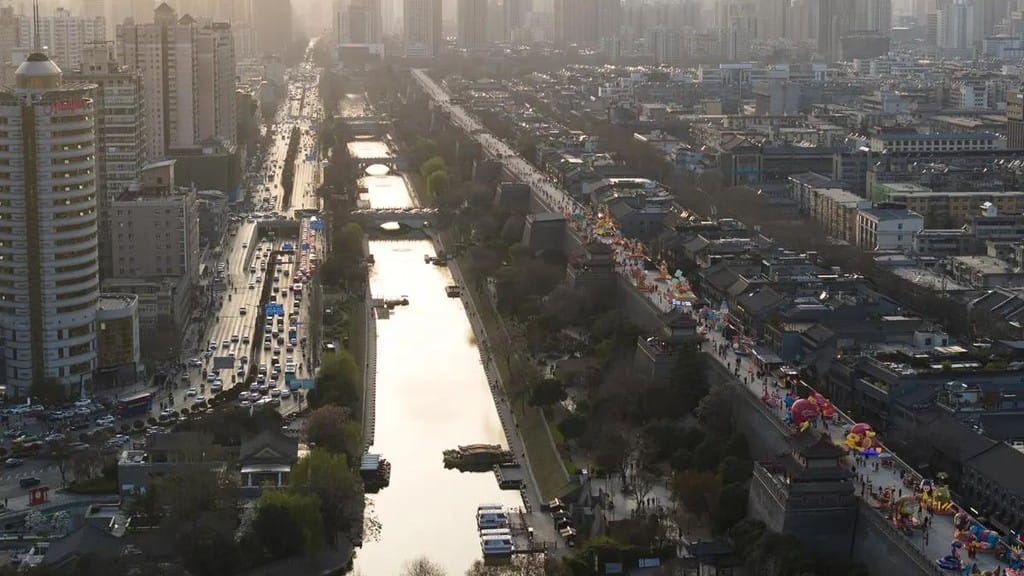 Risalente alla tarda dinastia Tang (904 d.C.) e completato durante la dinastia Ming (1368-1644), il fossato costituiva originariamente un sistema difensivo in combinazione con le mura cittadine. L’ultimo intervento di restauro ha chiuso l’anello, trasformandolo da una configurazione a “C” a una a “O”.