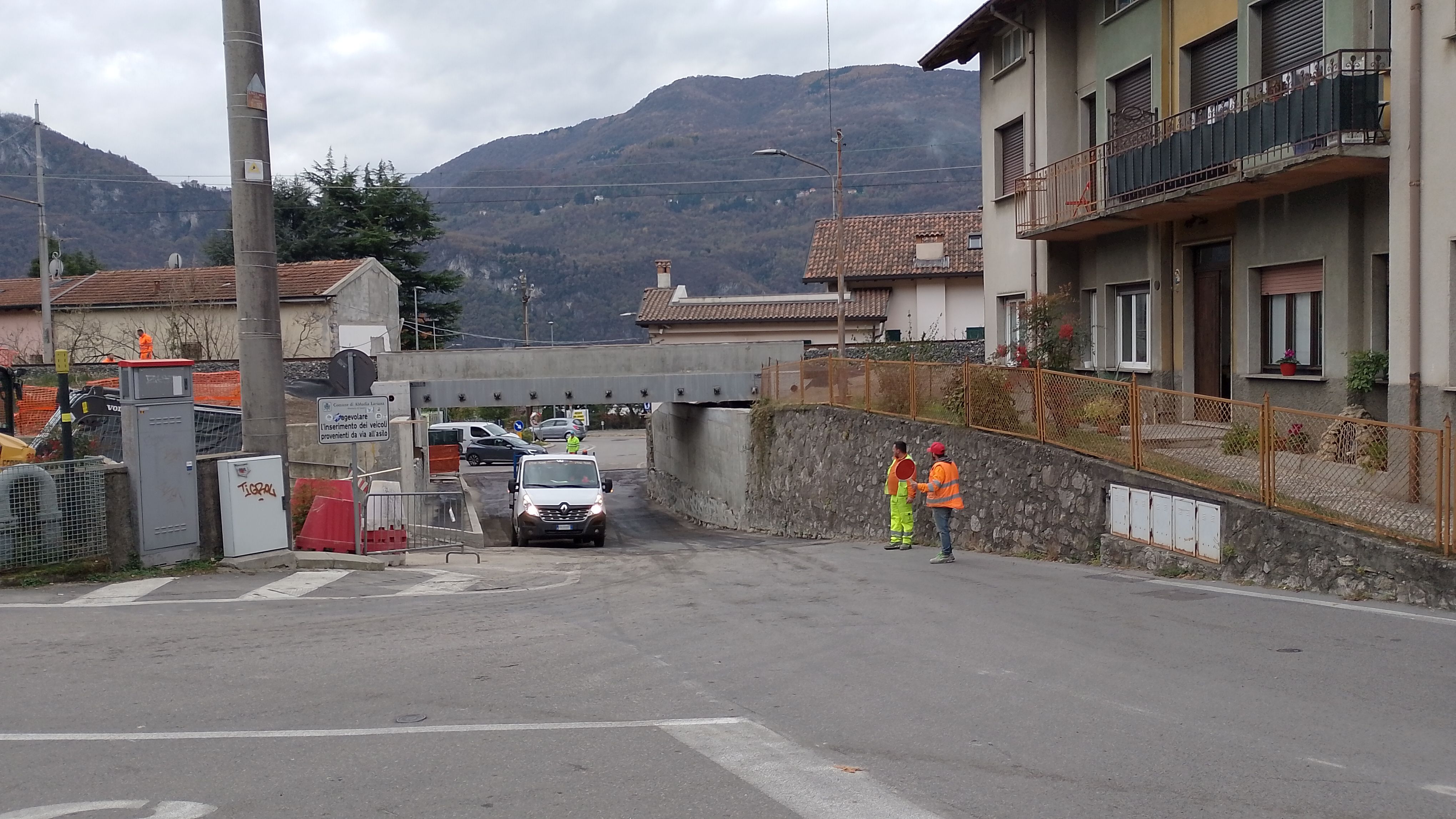 Una svolta epocale. Per la prima volta nella storia del paese si transita a doppio senso di circolazione nel tratto del sottopasso ferroviario di via per Novegolo, ad Abbadia Lariana.