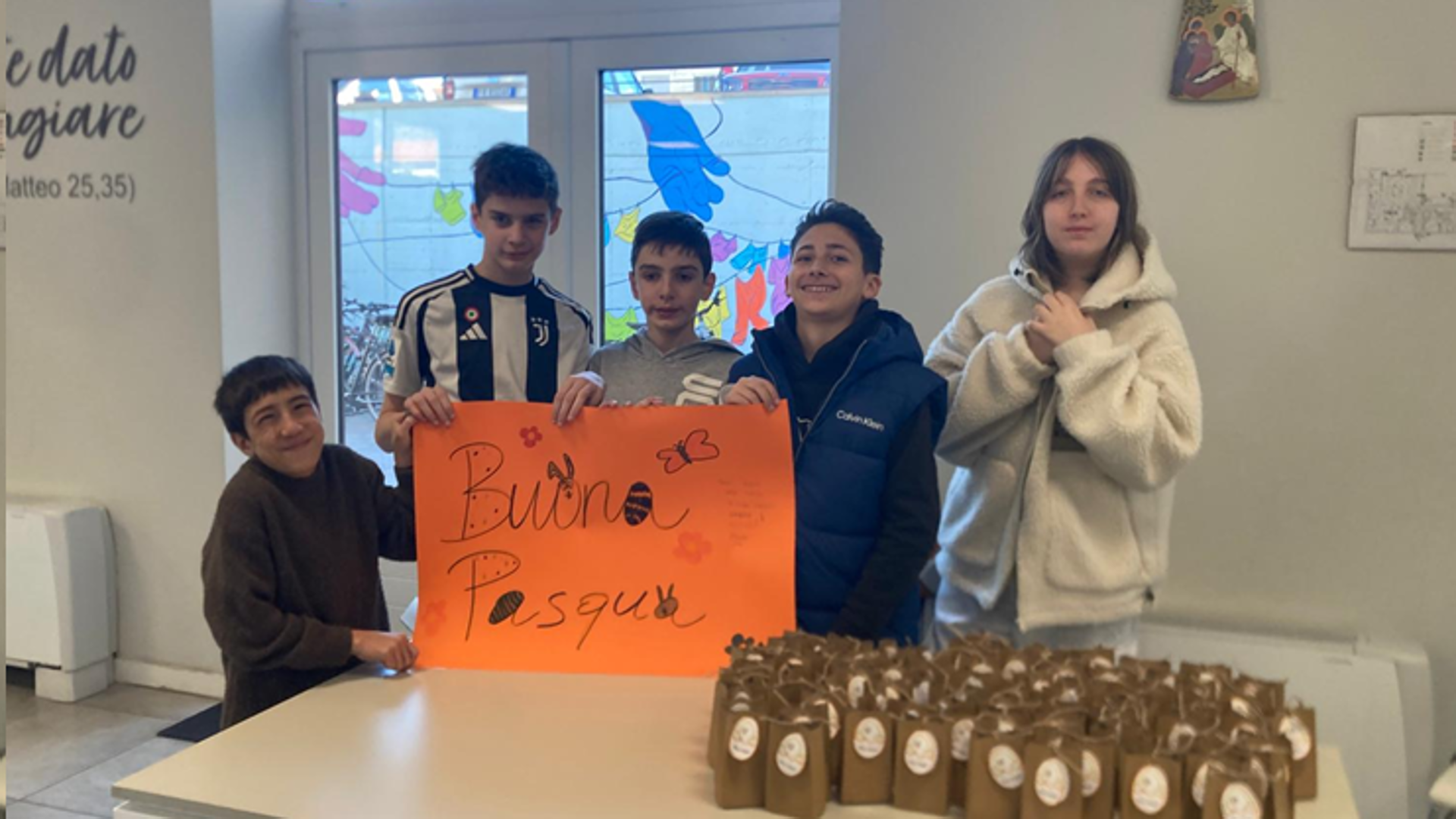 Un gesto semplice, ma carico di significato, ha segnato la visita degli studenti della scuola media Kolbe alla Casa della Carità di Lecco. Accompagnati dalle insegnanti, i ragazzi hanno consegnato ovetti di cioccolato con biglietti d’auguri destinati agli ospiti della struttura di via San Nicolò, entrando così in contatto diretto con una realtà che ogni giorno si prende cura delle persone più fragili.