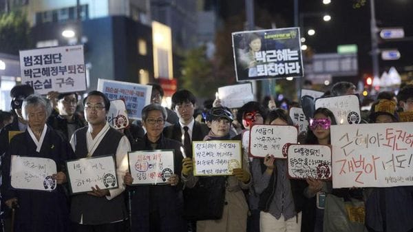 (ANSA) - SEUL, 29 OTT - Migliaia di sudcoreani sono scesi in piazza a Seul per chiedere le dimissioni della presidente Park Geun-hye, che sta perdendo la sua popolarità per un'accusa di aver consentito a una sua vecchia amica personale, …