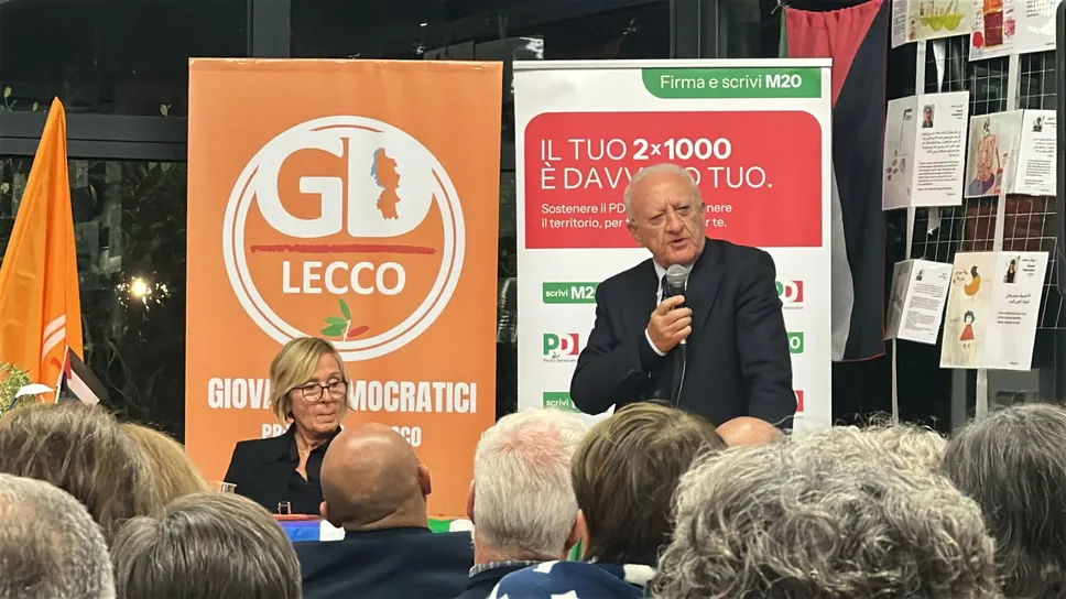 Il presidente della Regione Campania, Vincenzo De Luca, a Lecco per sostenere Mauro Gattinoni: elogi alla riqualificazione urbana e attacco alla riforma che limita il ballottaggio