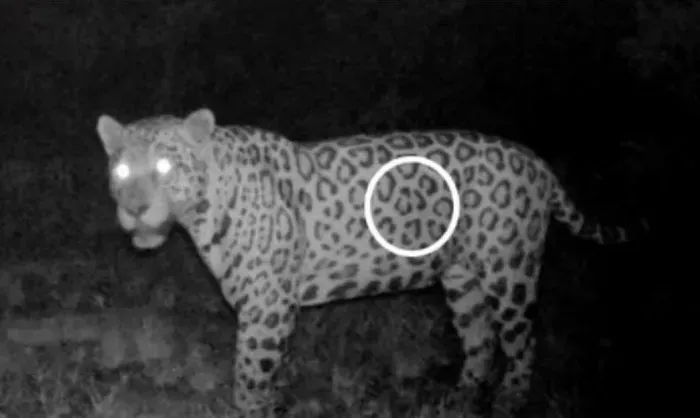Il giaguaro in questione ha raggiunto un' isola nell'area del bacino idrico della diga idroelettrica di Serra da Mesa , nello stato di Goiás. Lo stesso esemplare (identificato analizzando le macchie del mantello) era stato individuato nel 2020 sulla terraferma, a 2,48 chilometri di distanza dall'isola . La sua presenza è stata documentata dalle fototrappole (tre sulla terraferma e una sull'isola) installate per un'indagine esplorativa sui giaguari.