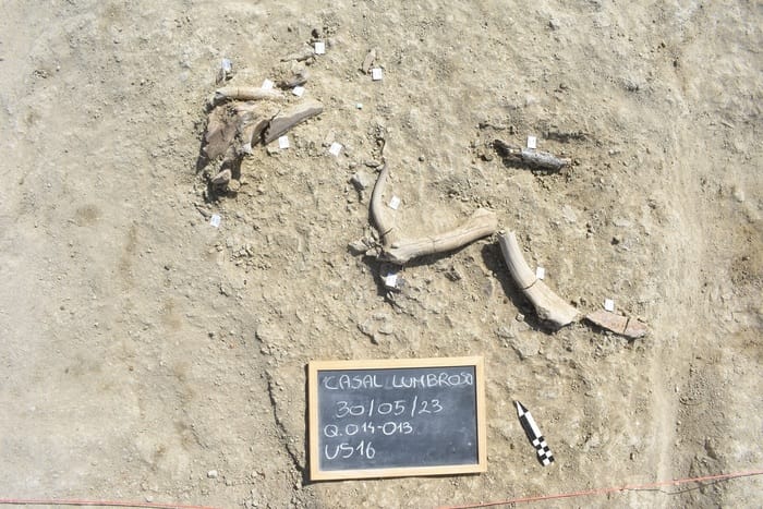 . Diversi resti ossei presentano fratture avvenute poco dopo la morte dell’animale, ciascuna associata a segni di impatto riconducibili all’uso di una forza contundente. L’assenza apparente di segni di taglio sulle ossa è compatibile con l’uso di