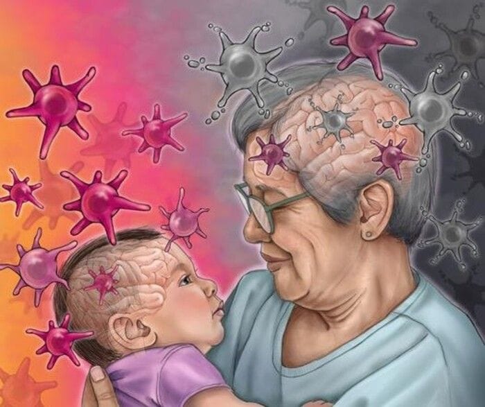 Cellule invecchiate , che hanno smesso di dividersi e non funzionano più normalmente , non sono una caratteristica esclusiva delle persone in età avanzata: sono state trovate infatti nel cervello di bambini sotto i 5 anni di età. Ciò dimostra che queste cellule senescenti hanno una doppia faccia: nelle ultime fasi della vita hanno effetti negativi, guidando l'invecchiamento e facilitando la comparsa di malattie neurodegenerative come Alzheimer e Parkinson, ma nei giovanissimi hanno invece un ruolo positivo necessario per lo sviluppo cerebrale.
