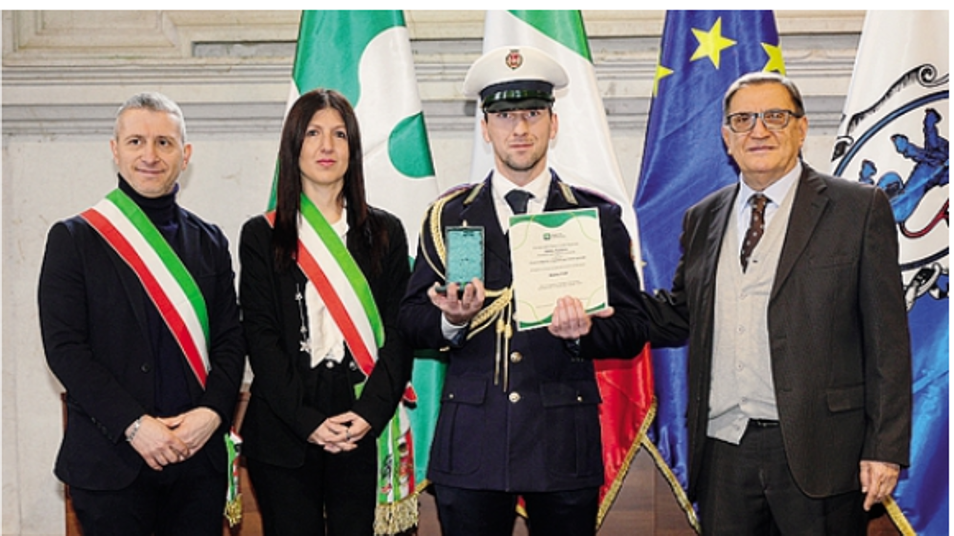 «Salvò la vita a un uomo»: premiato l’agente Mattia Fop