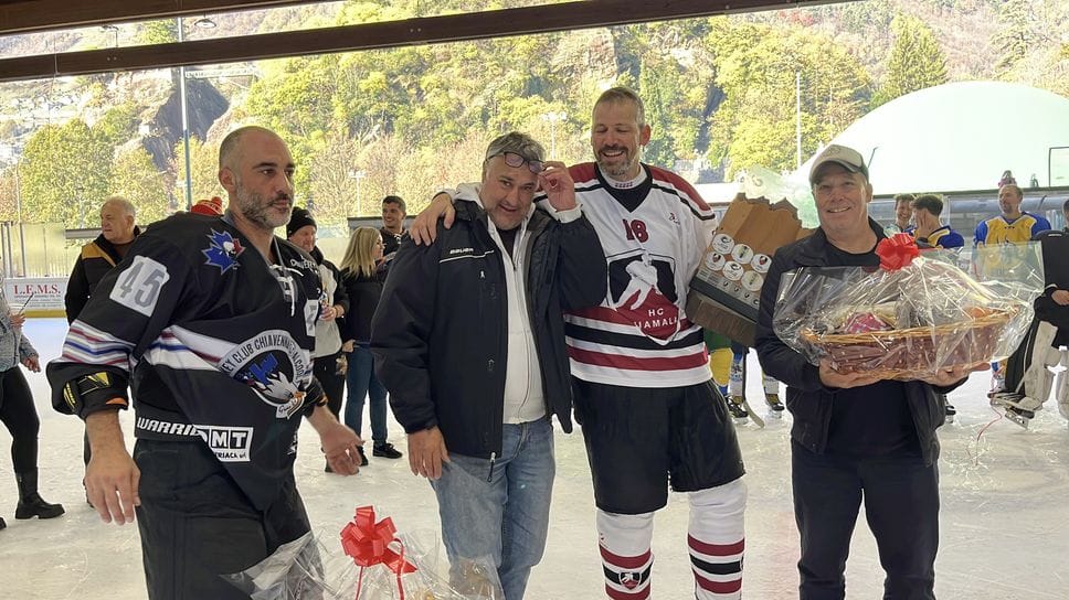 L’hockey, come qualsiasi sport, non ha età. E ne è la dimostrazione la Coppa delle Alpi, quadrangolare di questa disciplina che da 14 anni tiene banco al palazzo del ghiaccio di Chiavenna, dove sabato e domenica si sono ritrovati gli hockeisti senior della città per sfidare gli amici di Madesimo, Bellinzona e Via Mala-Coira. Un Trofeo che, tradizionalmente, segna l’avvio della stagione del ghiaccio chiavennasca, perché torna puntuale ogni anno, nel primo weekend successivo a quello di Ognissanti, e convoglia in città anche le delegazioni svizzere, sempre felici di tornare e trascorrere un fine settimana fra amici, a base di sano sport e ottima cucina chiavennasca.