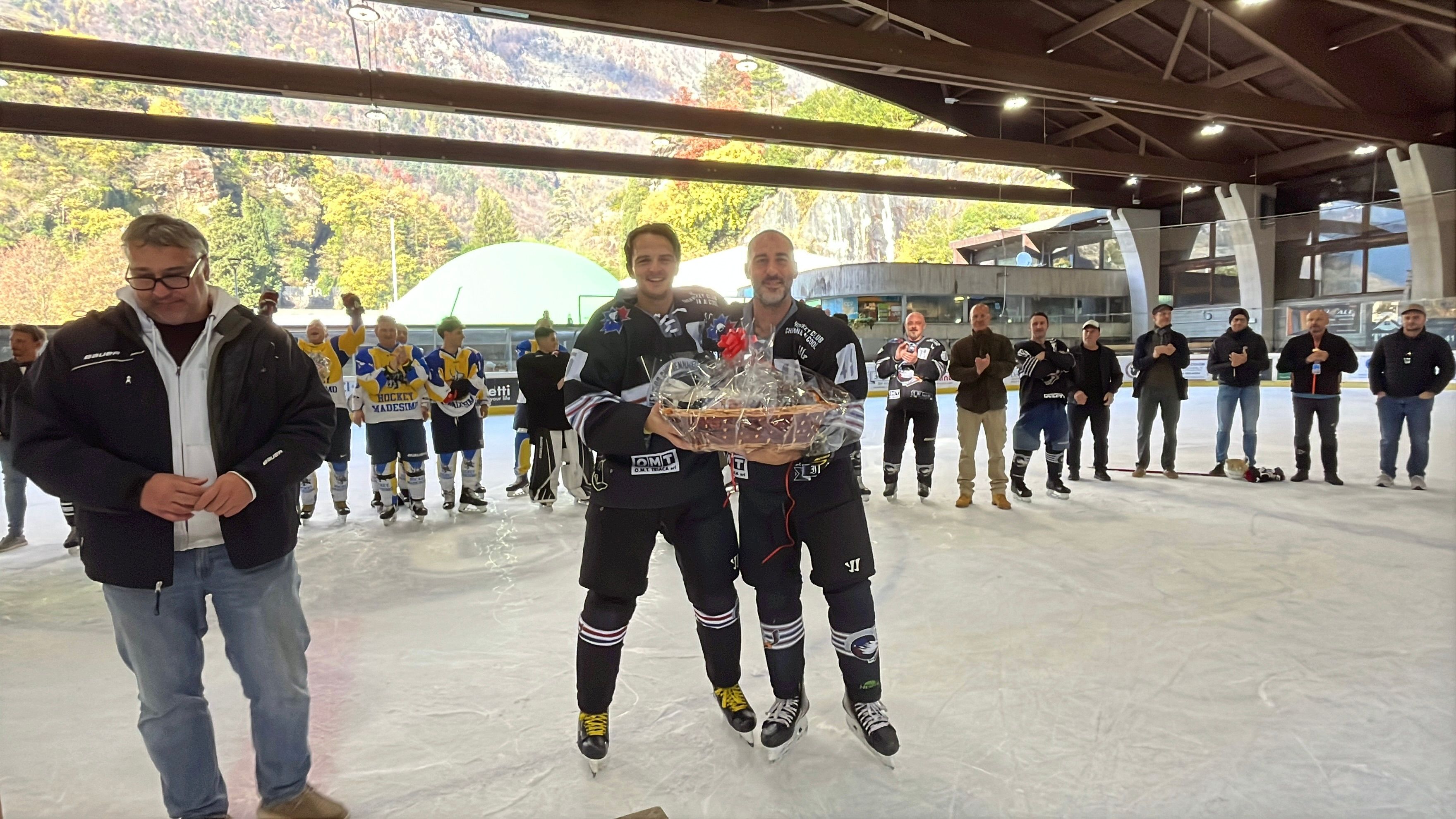 In pista, con il numero 30, anche Roman Simunek, coach dell’Unione Sportiva Chiavennese Alps Eagles, che non ha mollato la presa un istante e, con eleganza, ha infilato parecchi dischi in rete. Ma hanno fatto bene anche gli storici dell’hockey chiavennasco come Pietro Del Curto, Andrea Bossi, Ugo Finistauri, Doriano Guinzani, solo per citarne alcuni, tutti decisi a giocarsela. Al loro fianco, per perpetuare una tradizione più che consolidata in città, anche atleti più giovani che però non gareggiano nei campionati nazionali: ex verdeblù o giocatori attivi in squadre svizzere.