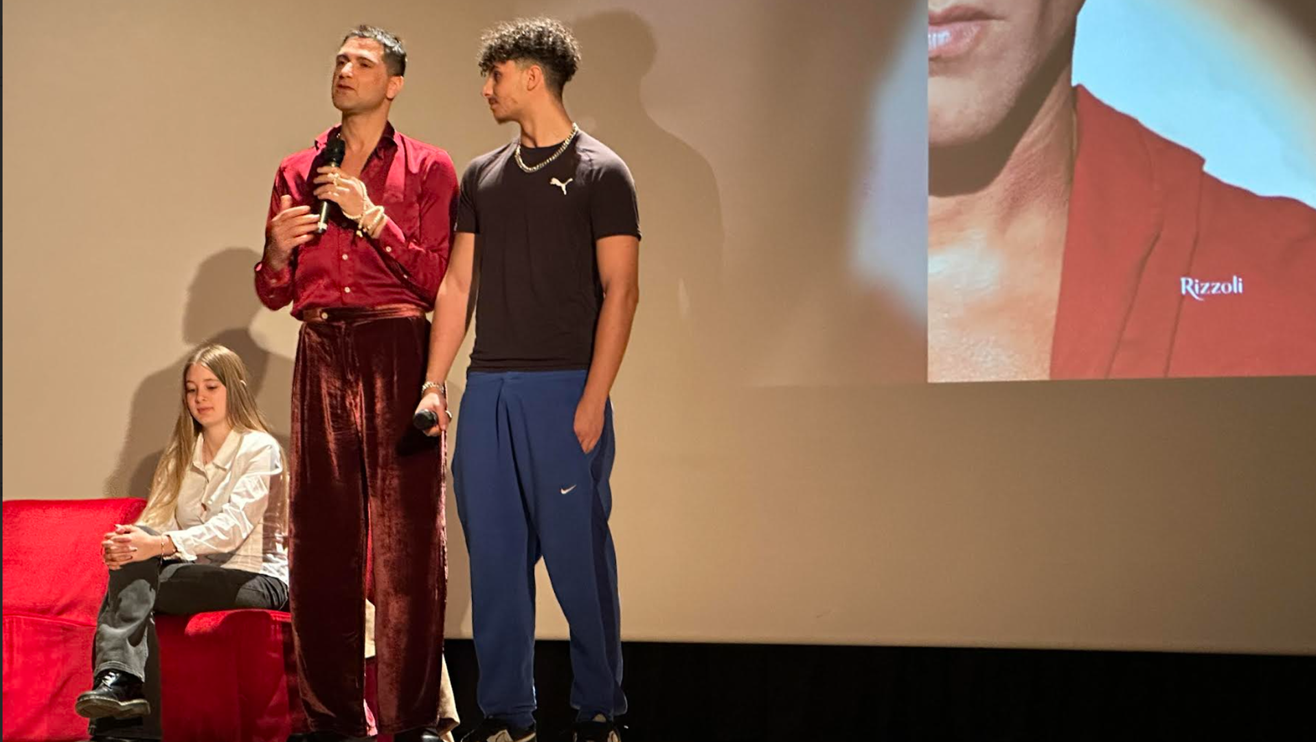 Nel pomeriggio si è ripetuto in modo diverso. Il Pinchetti ha esteso l’invito agli adulti all’auditorium “Luigi Trombini” dove il super modello ha presentato il suo libro “108 volte mi perdono”.